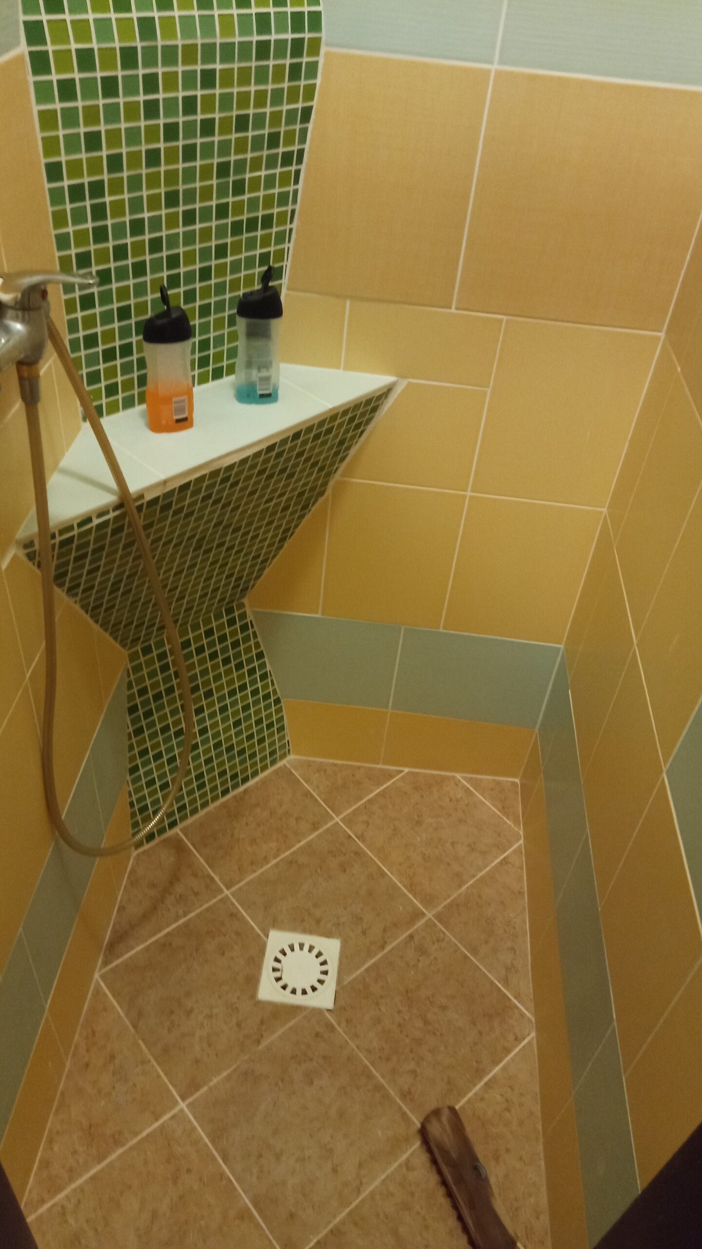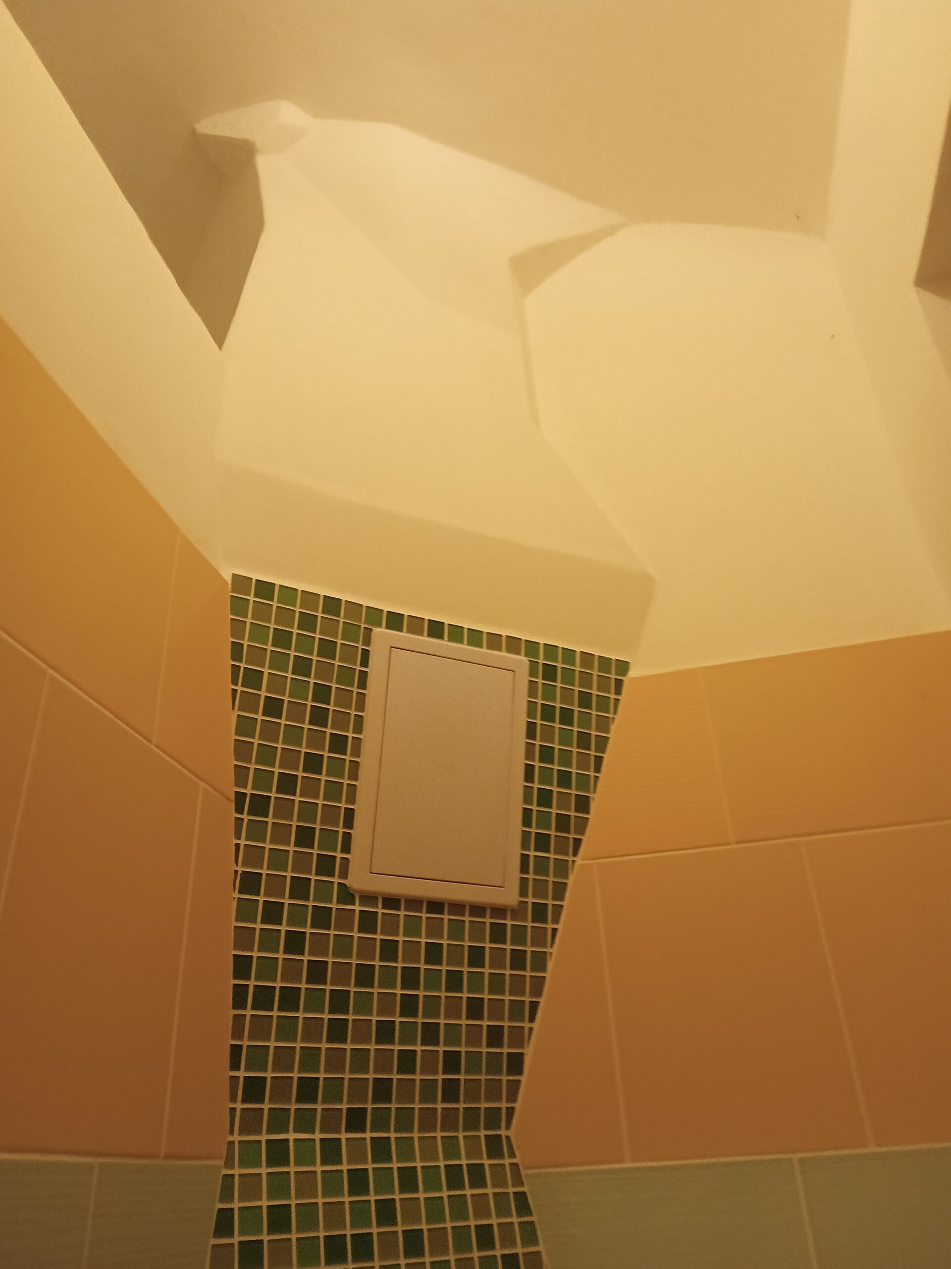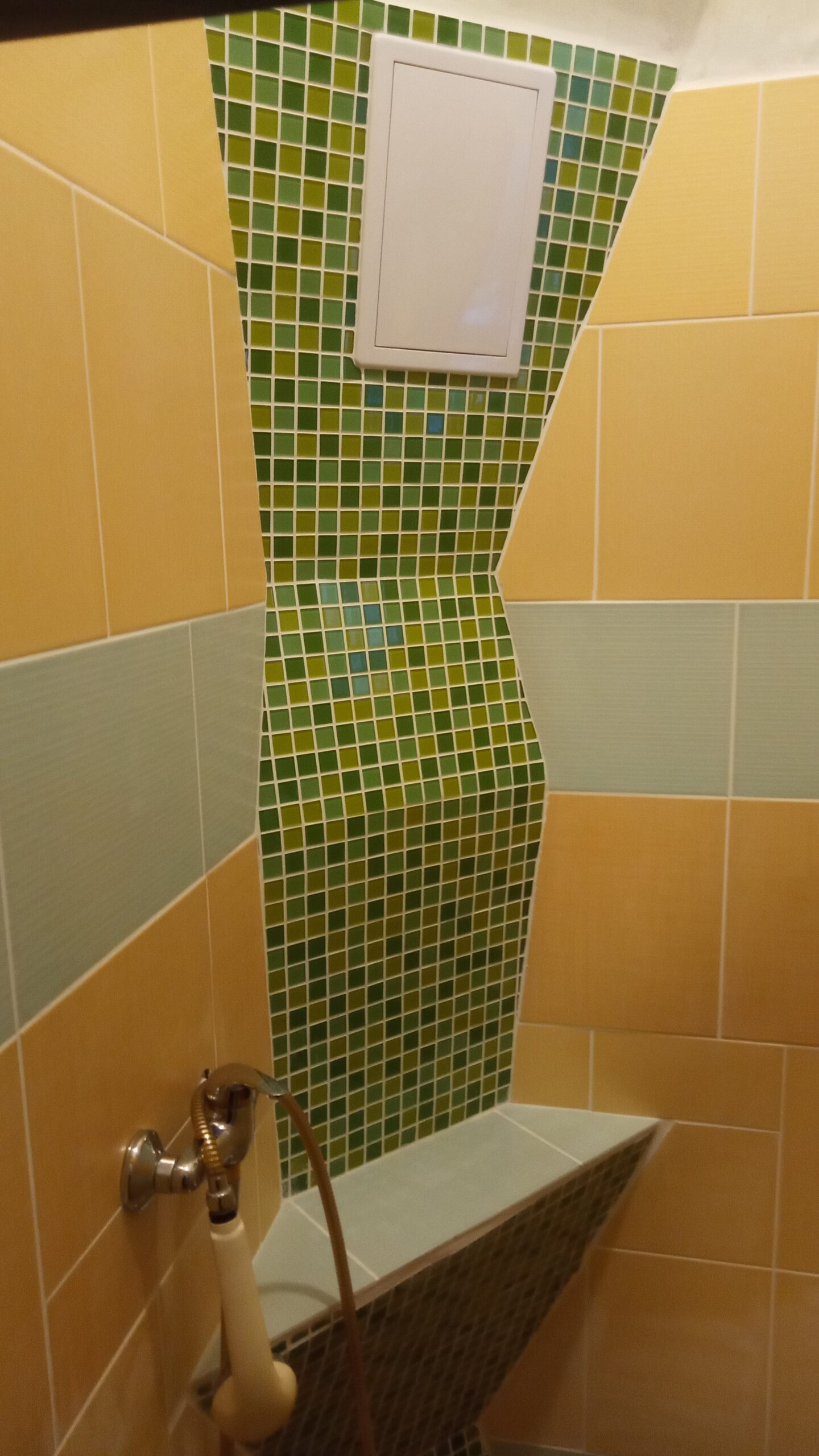 atipický sprchový kout, kdež se dochovaly pouze fotografie konečného výsledku.